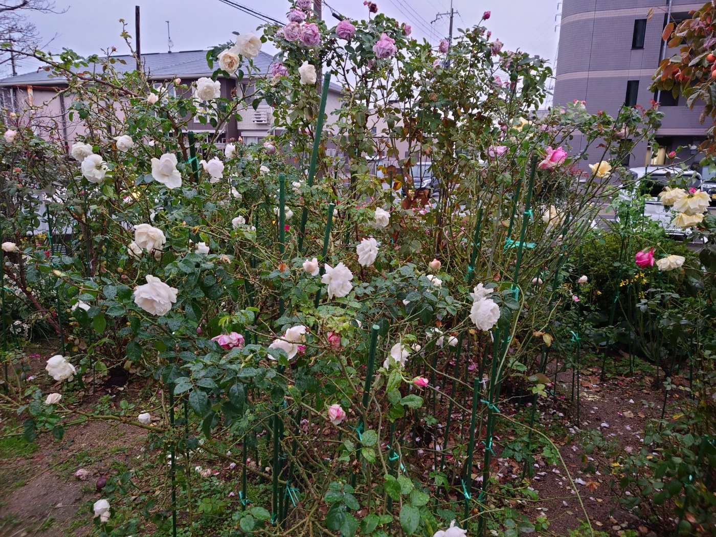 今日の雨で、薔薇はぐったりですが、頑張れニッポン!!