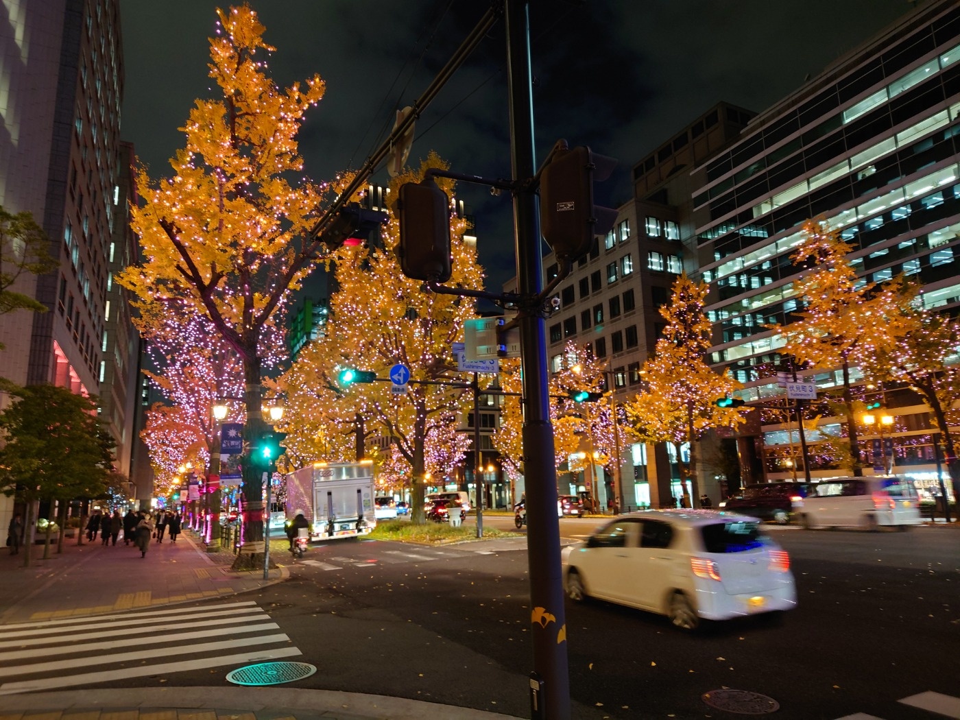 御堂筋のライトアップ、思ってた以上にきれいでした。