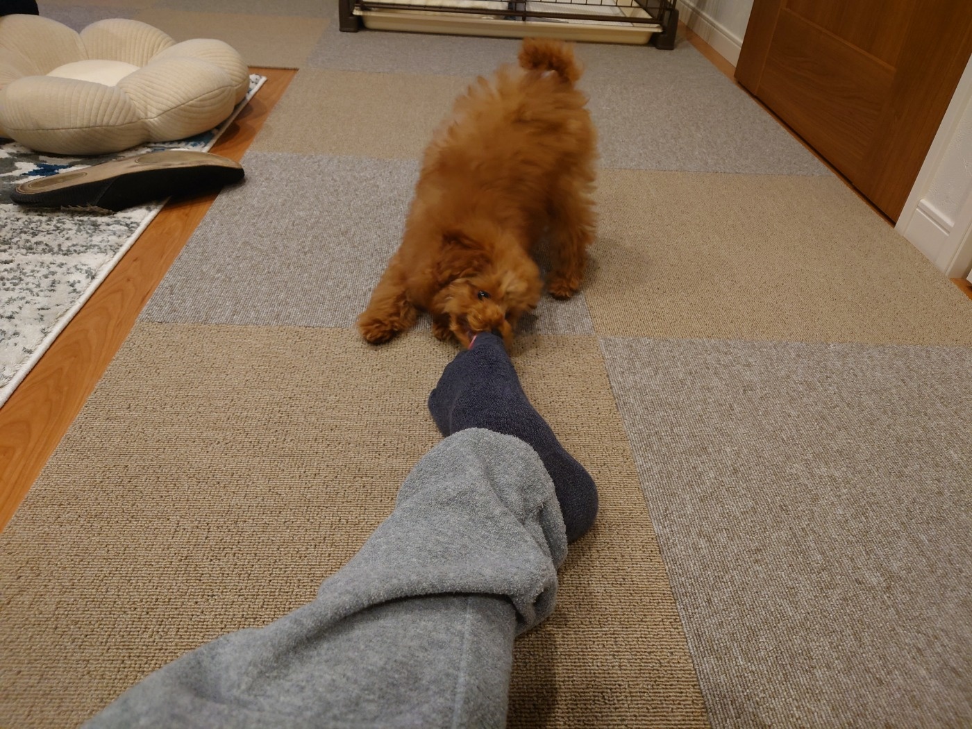昨日買って来たマットも大活躍。フローリングは滑るからなぁ。