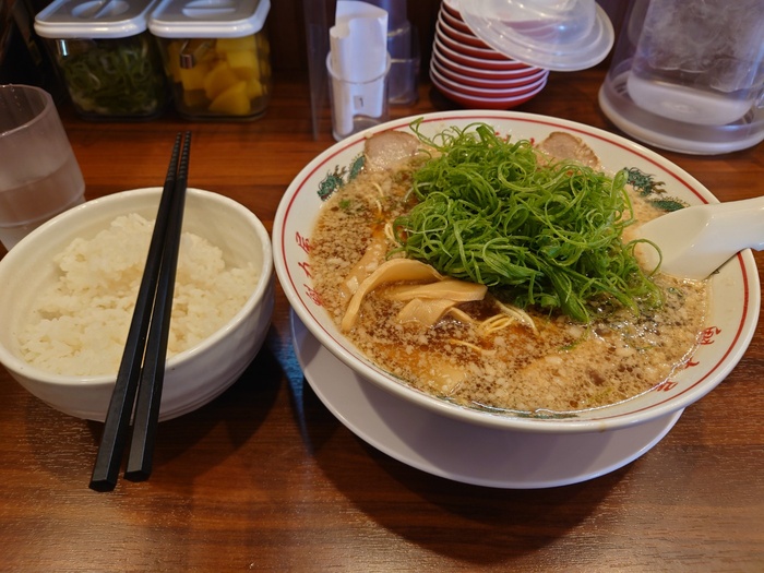 三浦ブログR 2025年12月15日 かなり久々の 本日、明石市の国道2号を走っていると魁力屋を発見!! で、予定の昼メシ時間よりやや早かったけど、行ってしまいました。 九条ネギがいっぱい乗ったやつの大盛りとライス小。 ほんまにいつ以来やろ?魁力屋。 今ほどチェーン店が出来る前以来です。多分5年以上、で済まないかな。 ごちそうさまでした。
