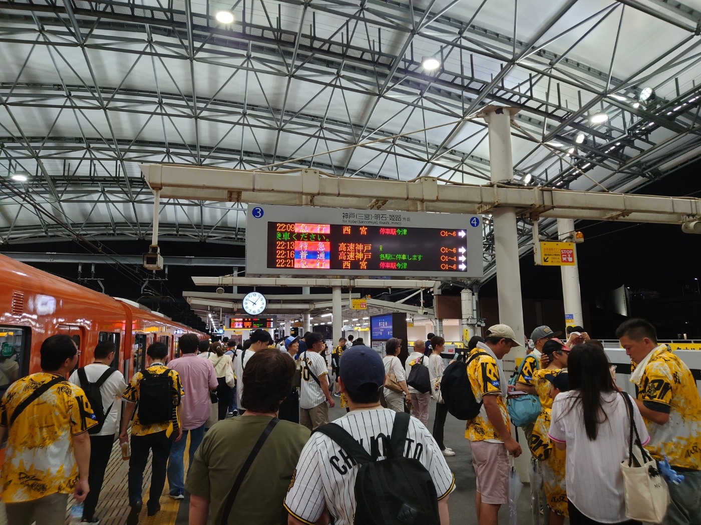 三浦ブログR 2025年07月11日 皆さん、早い 今日は負けゲームだったので、8回で退散。 でも三宮行きの電車はそれなりの人だかり。 皆さん、決断が早い。さすが関西人。 11連勝で十分、優勝間違いなし、と言ったところですなぁ。