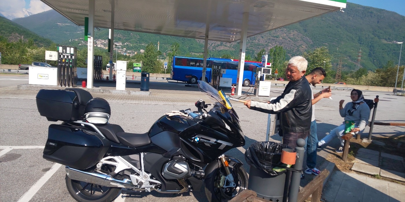 バイクをコントロールカーから出し、サイドバックをセットして自走下車、すると料金所があって、無事にスイスの地を踏むことができた。