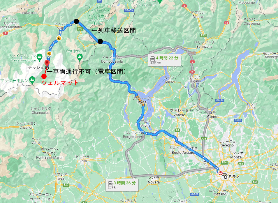 ということで、ミラノ経由となったが、なんとミラノからは2~3時間で標高4000m級の山々が連なるスイスのリゾート地に行ける、そりゃすごい。