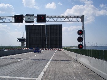 架橋道路が上げられ、ヨットが3台程通過、その間10分程度。