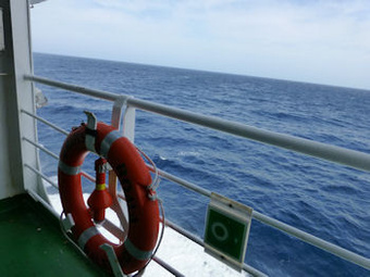 よって、窓から流れる波を見て、進んでいる船に乗った事実を確認しただけで、まずはほっとする。