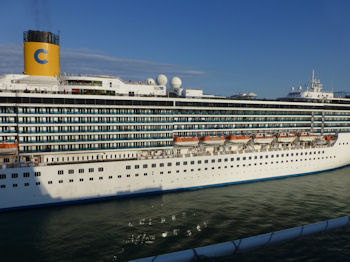 到着する船、出航する船、向こうのは相当デカイ。