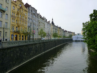 雨はやんでいた。未だ静かな朝食前の街に出て、すぐ近くのモルダウ川までふらり。