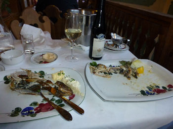 タイトル画のとおり、ようこそ!と迎えられ、自慢の魚料理とワインが食卓に並ぶ。