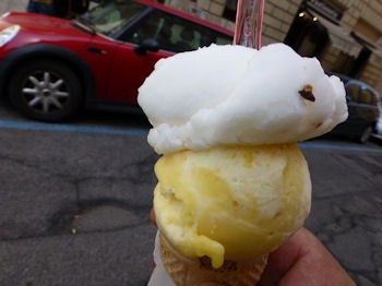 でもって、リモーネとマンゴーのジェラートでクールダウン。兄ちゃん!上と下が逆だってーの!