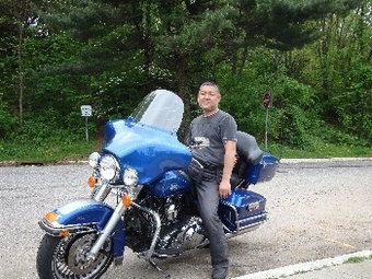 普通なら、ちょっと立って風に当たれば良さげなもんだが、アメリカンバイクは足が前なので立てない。