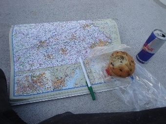 ルート確認して、朝食にマフィンとレッドブル。