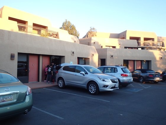 ここはモーテルです。先にチェックインし、車を部屋の前に置いてから、荷物を下ろしましょう。部屋はやや小さめでしたが、セドナのホテルはどこも高いので、家族旅行ならこれで充分です。