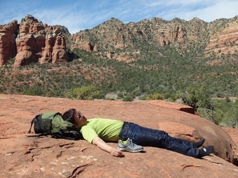 息子は岩山を走り回り、どこかに行ってしまったので、その間、しばしパパはイビキをかいてパワー吸収。