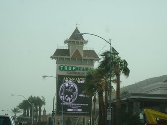セドナを出る時は快晴の空、それが砂漠地帯にあるラフリンでは猛烈な砂嵐でした。ホテルの玄関前ではビル風になっていたせいか、風速30m以上だったと思います。