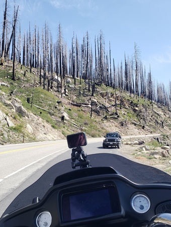 ここまでの道中、山間に入ってからは、各所で山火事の跡を見てきた。