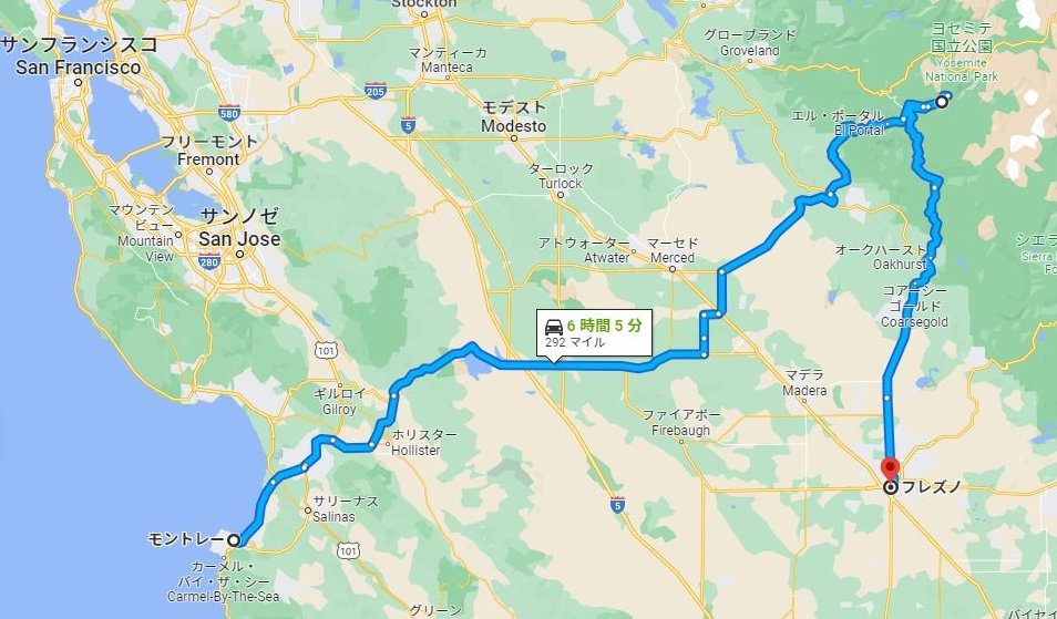 モントレー→フレズノ・304miles(486km)・晴れ・70°F(21℃)