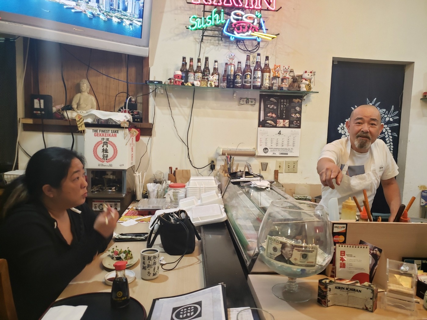 顔は和風だが、日本語の話せない女性店員に案内され、テーブルは遠慮して、勇気を持ってカウンターへ。