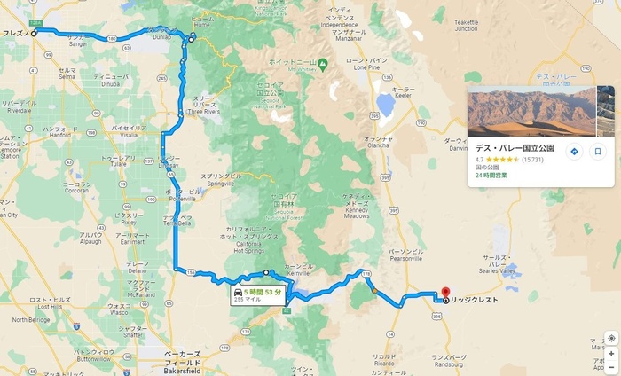 フレズノ→リッジクエスト・252miles(403km)・晴れ・75°F(24℃)