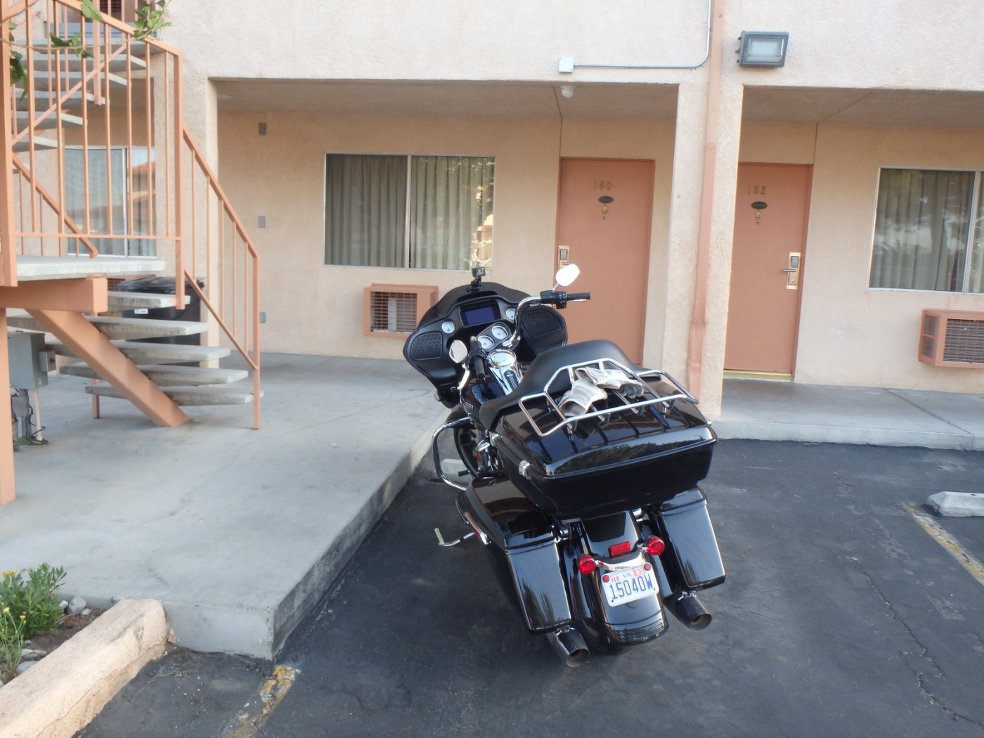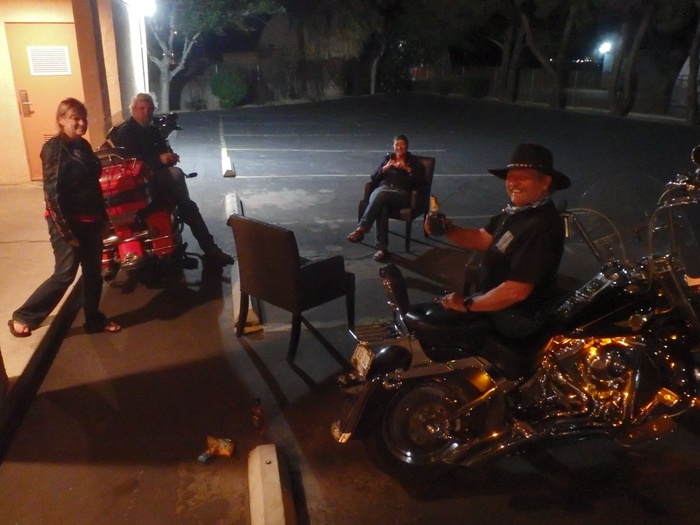 部屋に入ろうとすると、同じ並びに泊まってるハーレー連中が椅子を外に持ち出してくつろいでいた。