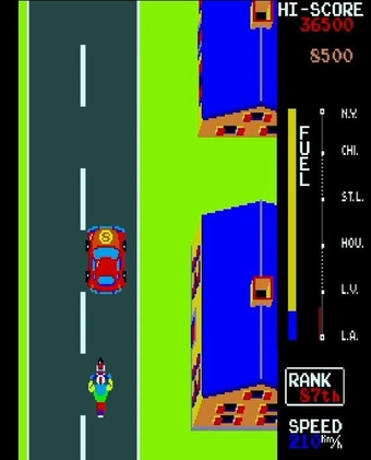 調べてみたら、このゲームはなんとロサンゼルスからニューヨークまで、アメリカを横断する壮大なストーリーで、まともには走れず、何度もこけまくる。。